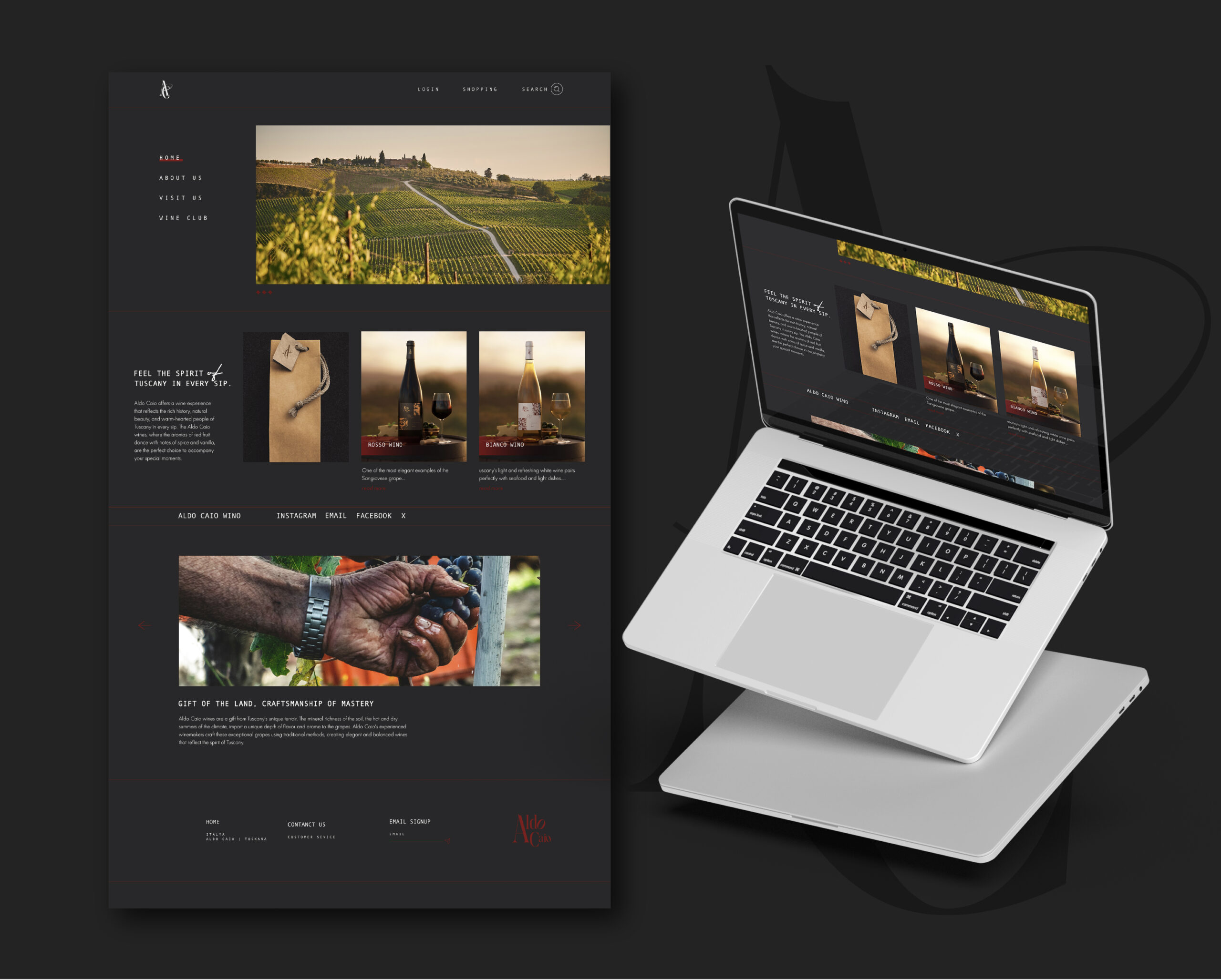 Aldo Caio markası, CreaShoot’un profesyonel dokunuşlarıyla daha da güçlenmiştir. Özgün ve etkileyici bir logo tasarımı, şarapların karakterini yansıtan etiket tasarımları ve markanın Toskana’nın ruhunu yansıtan bir web sitesi tasarımı gerçekleştirmiştir. CreaShoot’un yaratıcı vizyonu, Aldo Caio’nun marka kimliğini güçlendirmiş ve şaraplarının hikayesini dünyaya duyurmasına yardımcı olmuştur.